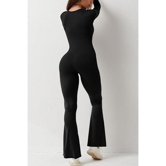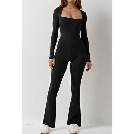 This long-sleeve, full-length flare jumpsuit features a square neckline at the front—adding a subtle touch of allure while keeping you cozy and warm during fall and winter. The full-length trousers gently flare from the knee, balancing elegance with movement, and the standout square neckline enhances a seductive yet sophisticated look, perfect for any occasion.